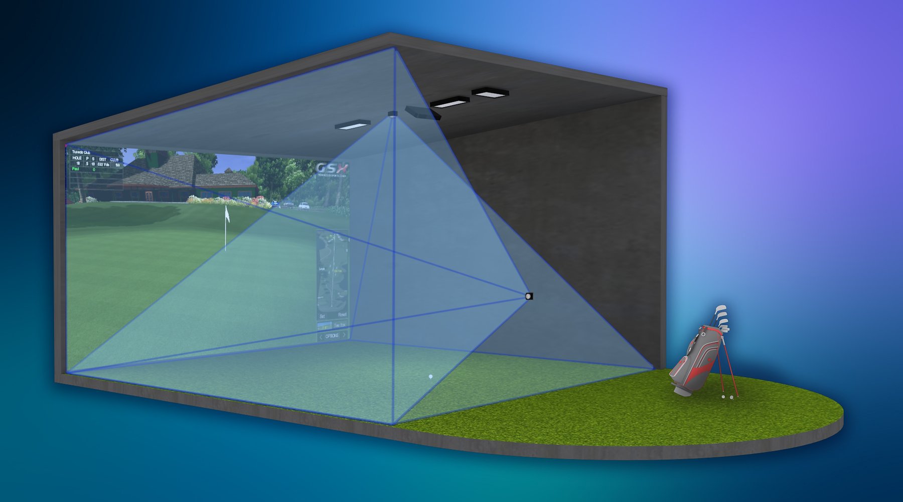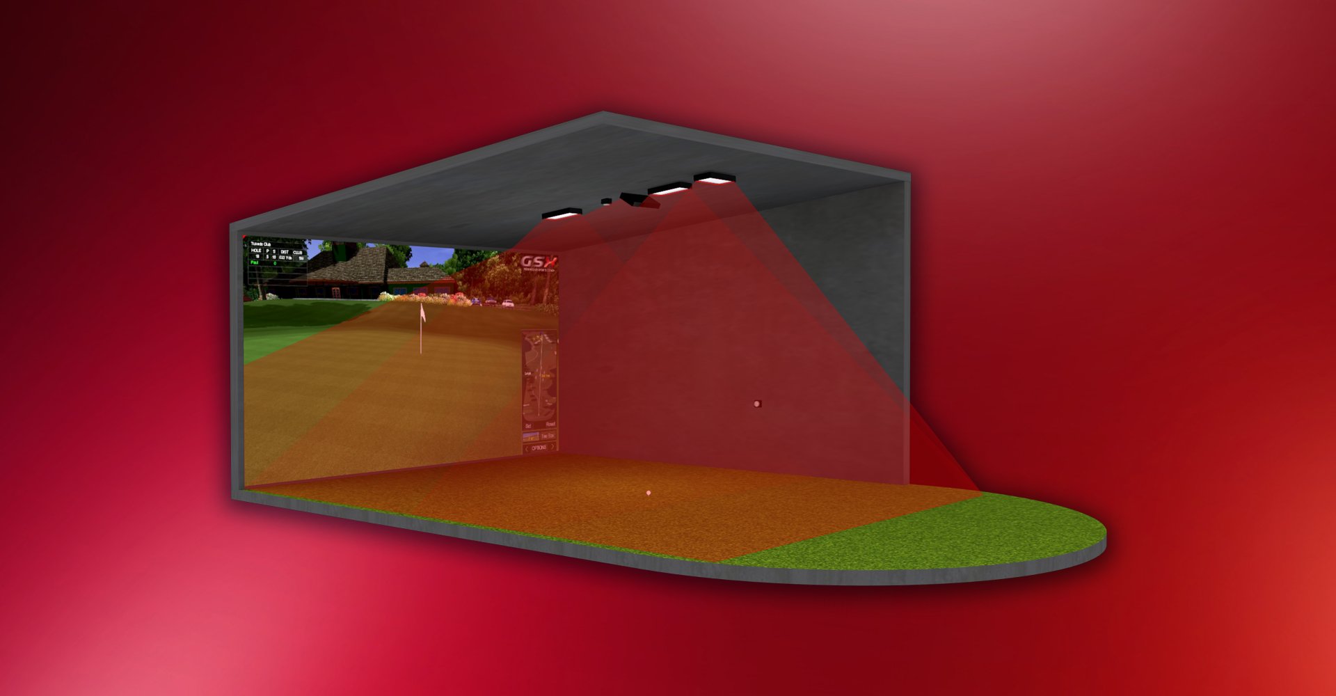 Đèn hồng ngoại của chúng tôi ít cần bảo dưỡng với tuổi thọ hơn 50.000 giờ. Mỗi đèn cung cấp quang phổ 850nm mạnh mẽ từ 60 đèn LED với góc chùm 60° đảm bảo rằng toàn bộ khu vực phát hiện từ người chơi đến màn hình nhận được lượng ánh sáng phù hợp để hệ thống của chúng tôi đo được toàn bộ cú đánh golf và đường bay của bóng. Ngoài lợi thế cung cấp lượng ánh sáng đáng kể cho hệ thống phát hiện, đèn của chúng tôi không nhìn thấy được bằng mắt thường và sẽ không làm tràn màn hình bằng ánh sáng khả kiến. Điều này tạo ra hình ảnh chiếu sáng hơn, rõ hơn và sắc nét hơn, giúp cải thiện đáng kể trải nghiệm của người chơi.